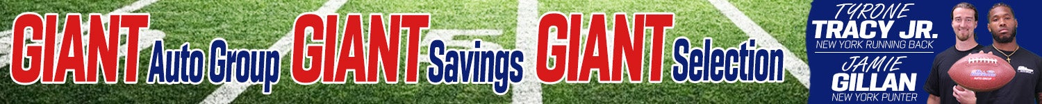 NY Giants players Tyrone Tracy Jr. and Jamie Gillan trusted All American Ford for their new vehicles. Tyrone chose the bold and powerful Shelby F-150 and Jamie is behind the wheel of a custom F-150 Hybrid. They are part of a growing list of Giants players who have made All American Ford their dealership of choice. GIANT Savings, GIANT selection, your GIANT Auto Group!